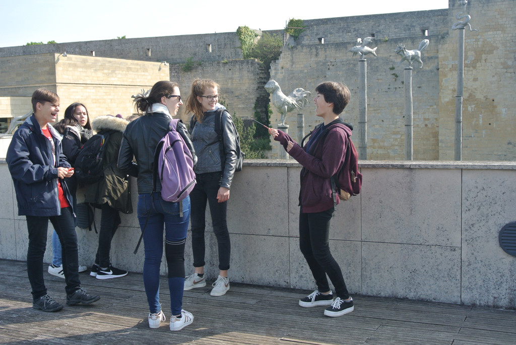 Am Montagmorgen in aller Frühe trafen sich 22 Mädchen der Maria-Ward-Schule und die Teilnehmerinnen von St. Ursula am Bahnhof, um den lang ersehnten Gegenbesuch in Caen anzutreten. Nach einer tollen Woche sind wir Sonntagfrüh um 07:00 Uhr wieder in Würzburg angekommen. Hinter uns liegen sechs aufregende und abwechslungsreiche Tage, in denen wir landschaftliche, historische und kulinarische Besonderheiten der Normandie kennengelernt haben. Auf dem Programm standen die Falaises d’Étretat, die Besichtigung der Tapisserie von Bayeux, der Besuch der Landungsstrände in Arromanches, und natürlich ein Ausflug zum Mont-Saint-Michel. Bei strahlendem Sonnenschein verbrachten die Schülerinnen den freien Mittwochnachmittag mit ihren Gastfamilien zum Teil am Meer, den Wind in den Haaren, die Sonne im Gesicht und die Füße im Wasser. Die interessantesten und schönsten Momente aber erlebten wir bei den gemeinsamen Aktivitäten mit unseren „corres“, wie der Stadtrallye in Caen, dem Unterrichtsbesuch, dem gemeinsamen Mittagessen in der Kantine, beim Bowling und bei der Fête d’adieu am Freitagabend. Wir bedanken uns bei allen Gastfamilien und den französischen Lehrerinnen, Mme Zündt, Mme Letourneur, Mme Tarlet, Mme Paget, Mme Dézert und Mme de Fons Villar, die für uns ein tolles Programm gestaltet haben und uns mit großer Gastfreundschaft und Herzlichkeit aufgenommen und umsorgt haben. Wir haben Tränen gelacht, gegessen, gesungen und getanzt. Merci beaucoup et à bientôt - Vive l’amitié franco-allemande!