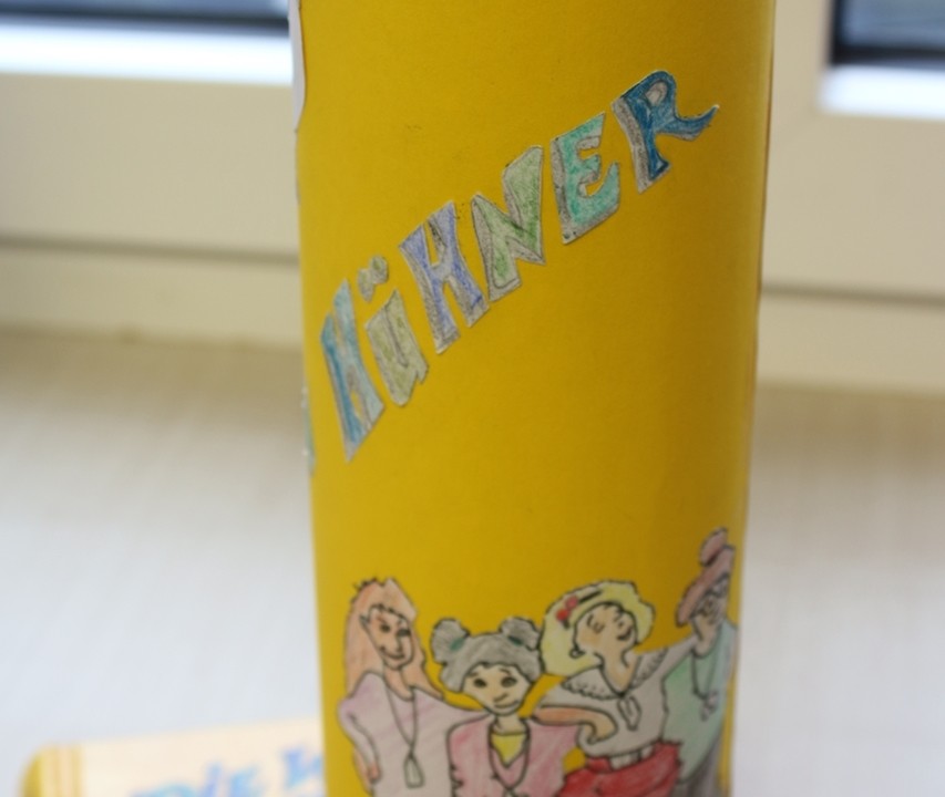 Grundlage hierfür bildete eine leere Chipsdose, die mit allerhand Informationen zum Buch gefüllt wurde. Die Schülerinnen beschäftigten sich zum Beispiel mit den jeweiligen Autoren, verfassten eine Buchkritik und stellten eine Liste der wichtigsten handelnden Personen zusammen. Als kreative Aufgaben standen u.a. das Schreiben eines Diabolos oder eines ABC-Dariums zur Wahl sowie das Illustrieren der Lieblingsstelle. Die Chipsdosen wurden zudem außen zum Buch passend gestaltet. So entstanden tolle Werke, die am Tag der offenen Tür ausgestellt und bestaunt wurden.