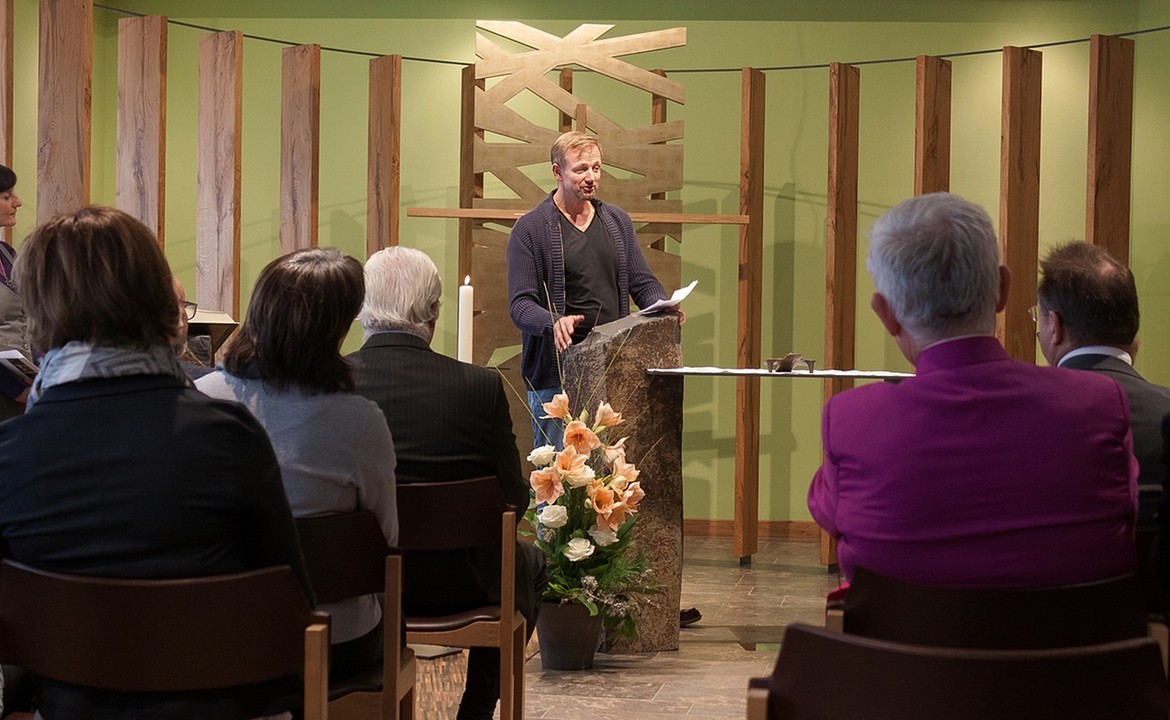 Viele waren an der Neugestaltung beteiligt. Ihnen allen gebührt Dank. Vor allem aber dem Glas- und Lichtkünstler Mario Haunhorst, der die Neukonzeption des Raumes zu verantworten hat.