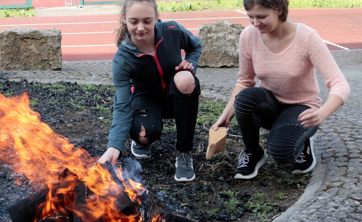 Die Schülerinnen sammelten selber ihr Holz, um auf offenem Feuer im Schulhof die Speisen nach Rezepten verschiedener Regionen Afrikas zuzubereiten. Ausgebackene Teigwaren, Süßkartoffeln, Erdnüsse, Backbananen und vielerlei Gemüse bildeten die Grundzutaten.