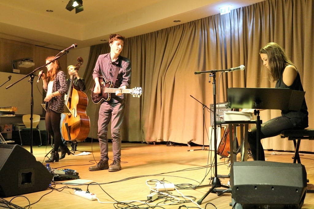 Nachdem Raphael mit seiner Gitarre die Gäste eingestimmt hatte, betraten Hannah und Falco zusammen mit befreundeten Musikern am Kontrabass und Keyboard die Bühne. Eineinhalb Stunden lang unterhielten die Vier ihr Publikum mit selbst komponierten Balladen und eingängigen Melodien aber auch mit bekannten Cover-Songs in ihrer persönlichen Version.