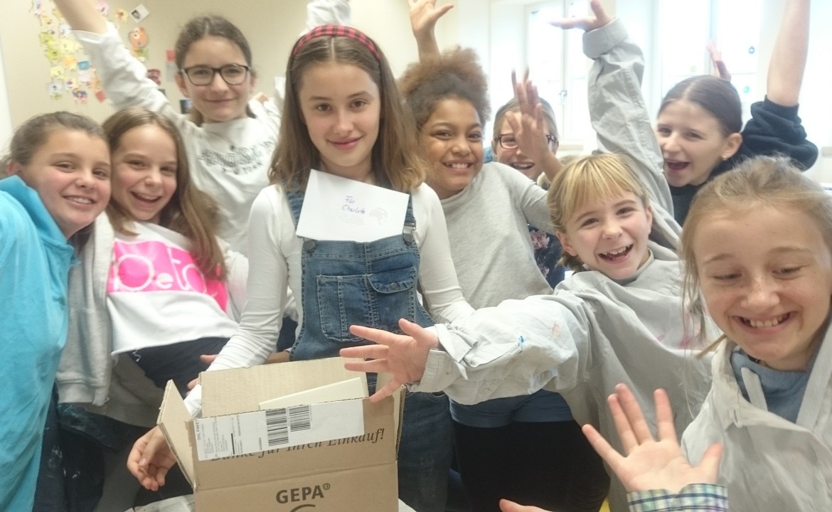 Äußerst ansprechend war der originelle Hauptpreis des Malwettbewerbs: das Gewinnerbild wird ein Jahr lang die GEPA-Vollmilchschokolade schmücken! (Achtet im neuen Jahr beim Einkaufen darauf!) Bei dem bundesweiten Malwettbewerb (Altersgrenze 18 Jahre) wurden über 3000 Kunstwerke eingesandt, und PLATZ ZWEI (!) hat eine Schülerin unserer Schule belegt: Charlotte aus der Klasse 6b! Herzlichen Glückwunsch! Es war eine wunderbare Überraschung, und die ganze Klasse hat sich mit gefreut. Alle Bilder waren besonders, und viele hätten einen Ehrenpreis verdient. Aus diesem Grund haben wir uns entschieden, kleine Schokoladen mit Lieblingsmotiven (eine Mischung aus Schülerinnen- und Lehrerfavoriten) zu schmücken und an der Adventseinladung am 2. Dezember für einen guten Zweck zu verkaufen. Wie „Die Sternsinger“ auf ihrer Homepage schreiben: „Wer die Wahl hat, hat die Freude.“ Schwierig wird die Wahl trotzdem werden, so viele Bilder hätten eine Ehrung verdient! DANKE fürs Mitmachen und für eure Kreativität! Manuela Gehr