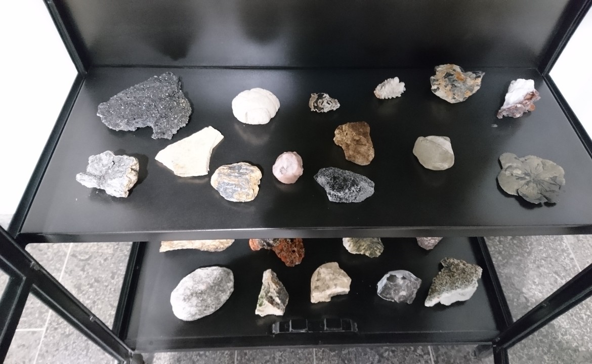Unsere ehemalige Deutsch- und Geographie-Kollegin, Frau Ursel Röder, hat der Schule eine umfangreiche Mineraliensammlung überlassen sowie den passenden Schrank dazu gestiftet. In ihm werden die tollen Ausstellungsstücke wie Halbedelsteine, seltene Gesteine und Versteinerungen nun besonders gut zur Geltung kommen und den Geographieunterricht noch spannender und „zum Anfassen“ gestalten. Vielen Dank dafür, liebe Ursel!