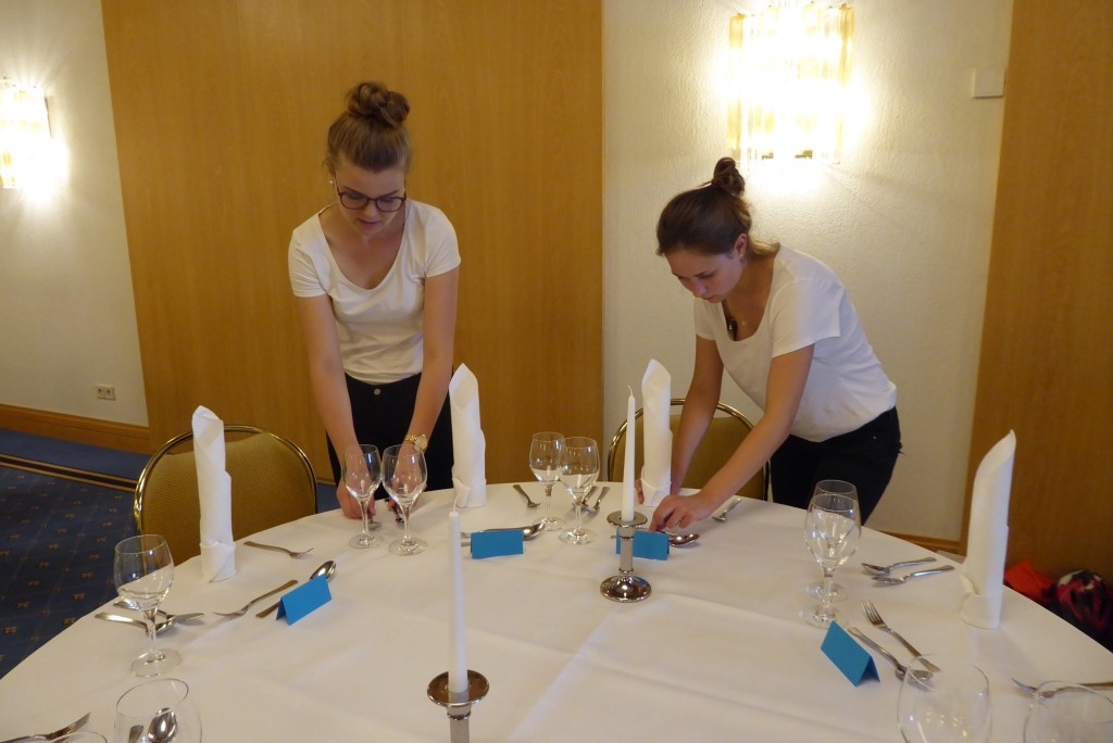 Am Nachmittag bereiteten wir die drei Gerichte in den eingeteilten Gruppen in der Großküche des Maritims zu, deckten die Tische ein und bereiteten das Abendprogramm vor.
