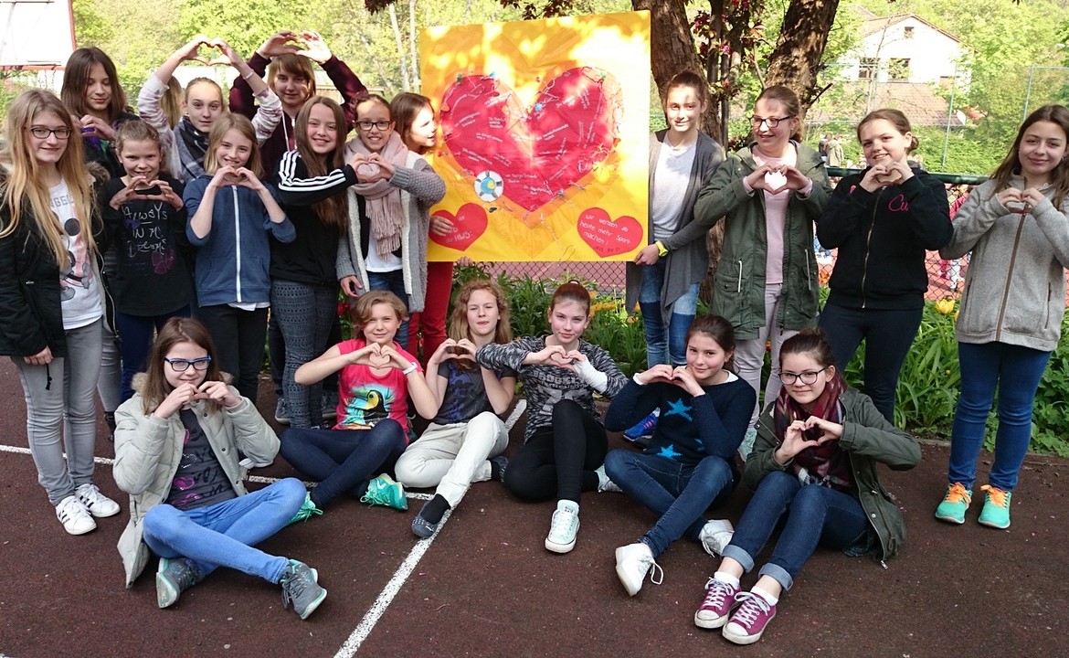 Ein besonderes Lob geht an die Klasse 6b für ihre Gemeinschaftsarbeit (bei der jede Schülerin eine Sportart aus Aluminiumdraht dargestellt hat; die Drahtmodelle wurden auf einer großen Styroporplatte in Herzform arrangiert) und für die vielen, wunderschönen Einzelarbeiten aus der Klasse 5b! Mehr als ein Drittel unserer Künstlerinnen hat (nach einem gemütlichen gemeinsamen Picknick) am 14.06.2016 an der Preisverleihung im Würzburger Rathaus teilgenommen. Ein Dank auch an die Organisatoren des Malwettbewerbs unter Leitung von Frau Börste: für die wunderbare Idee einer künstlerischen Auseinandersetzung mit dem Thema Herz und Gesundheit ….und die liebevoll ausgewählten Preise! Hervorgehoben wurde die „Wundertrommel ‚Bewegtes Herz‘ von Antonia Lohrey für ihre außergewöhnliche Idee. Zum Abschluss durften sich bei der Verlosung unsere Glückspilze Elea Fee Biko und und Jule Assian über zwei (der nur fünf) Sonderpreise freuen: über zwei Freikarten für ein Handballspiel 2. Bundesliga der Rimpar Wölfe! Manuela Gehr