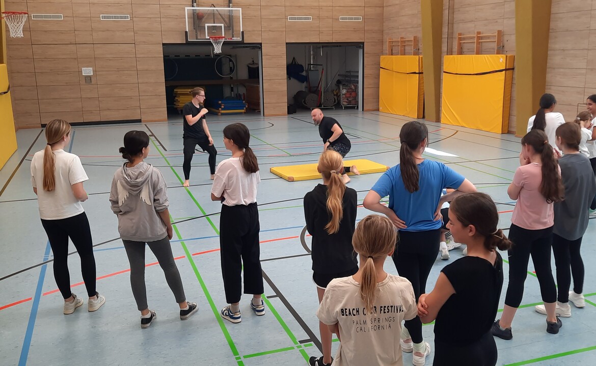 Unter dem Motto der Zweckmäßigkeit stand der Selbstverteidigungskurs, der in den beiden 6. Klassen am 10.07.2025 in der Turnhalle der Maria-Ward-Schule stattfand.