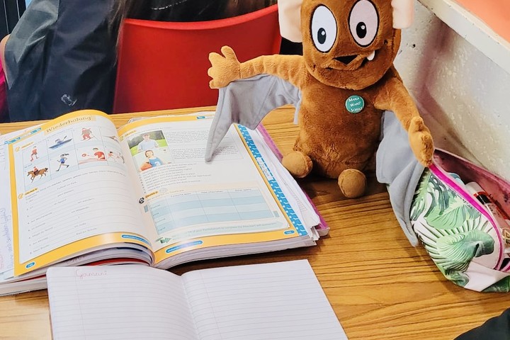 The picture shows me during the German lesson. I had a lot of fun helping the students a little bit.