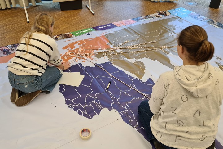 Unter der Leitung von Frau Jantschke wurden teamweise Informationen und Lösungsansätze zu den schwierigen Arbeitsbedingungen in den Produktionsländern, der entscheidenden Rolle der Verbraucher und der Möglichkeit zum Recycling gebrauchter Kleidungsstücke gesammelt. Besonders beeindruckend fanden die Schülerinnen die weiten Transportwege einer Jeans, da sich die einzelnen Produktionsschritte auf viele Länder der Welt verteilen und das Kleidungsstück bis zum Verkaufstisch oft mehr als 50.000 km zurückgelegt hat.