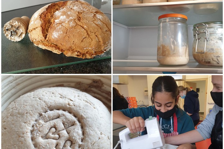 Unter diesem Motto stand der fächerübergreifende Unterricht in der Klasse 8c IIIb. Hierzu setzten die Schülerinnen als vorbereitende Hausaufgabe einen Sauerteig selbstständig an. Dieser Sauerteig wurde in der folgenden Unterrichtsstunde in Ernährung und Gesundheit zu einem kräftigen Sauerteigbrot verbacken. Ein besonderes Highlight bildete der Segensstempel, welchen die Schülerinnen benutzen durften.