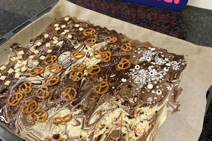 Die Schülerinnen haben in einem kreativen Projekt die "Dubai Schokolade" hergestellt. Diese handgemachte Schokolade kombiniert exotische Zutaten und spiegelt das Engagement und die Kreativität der Schülerinnen wider. Ein köstliches Ergebnis!