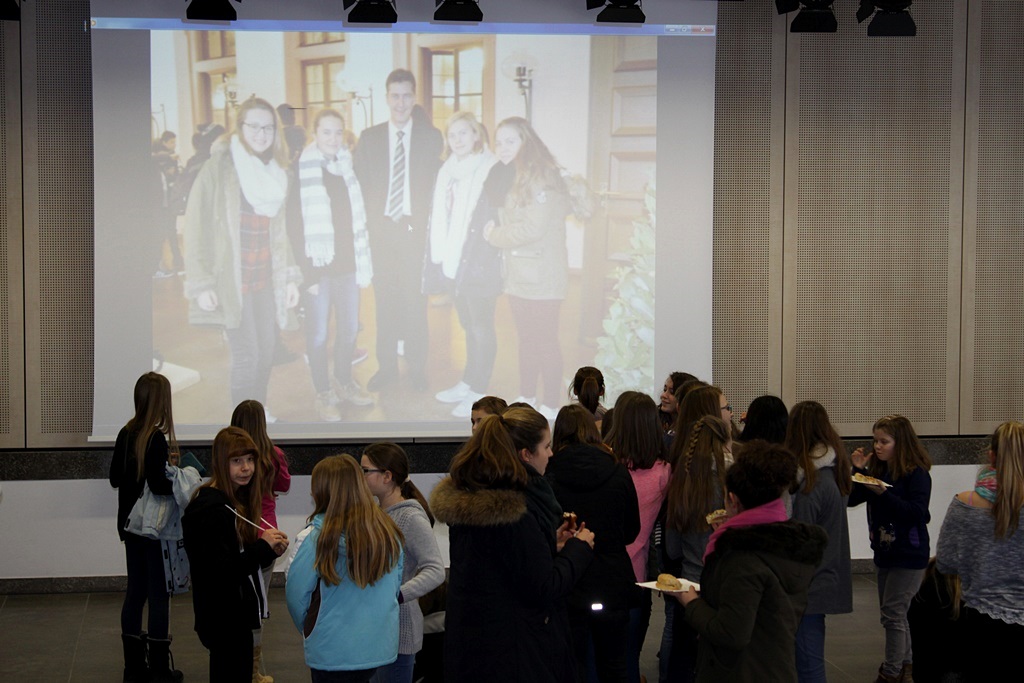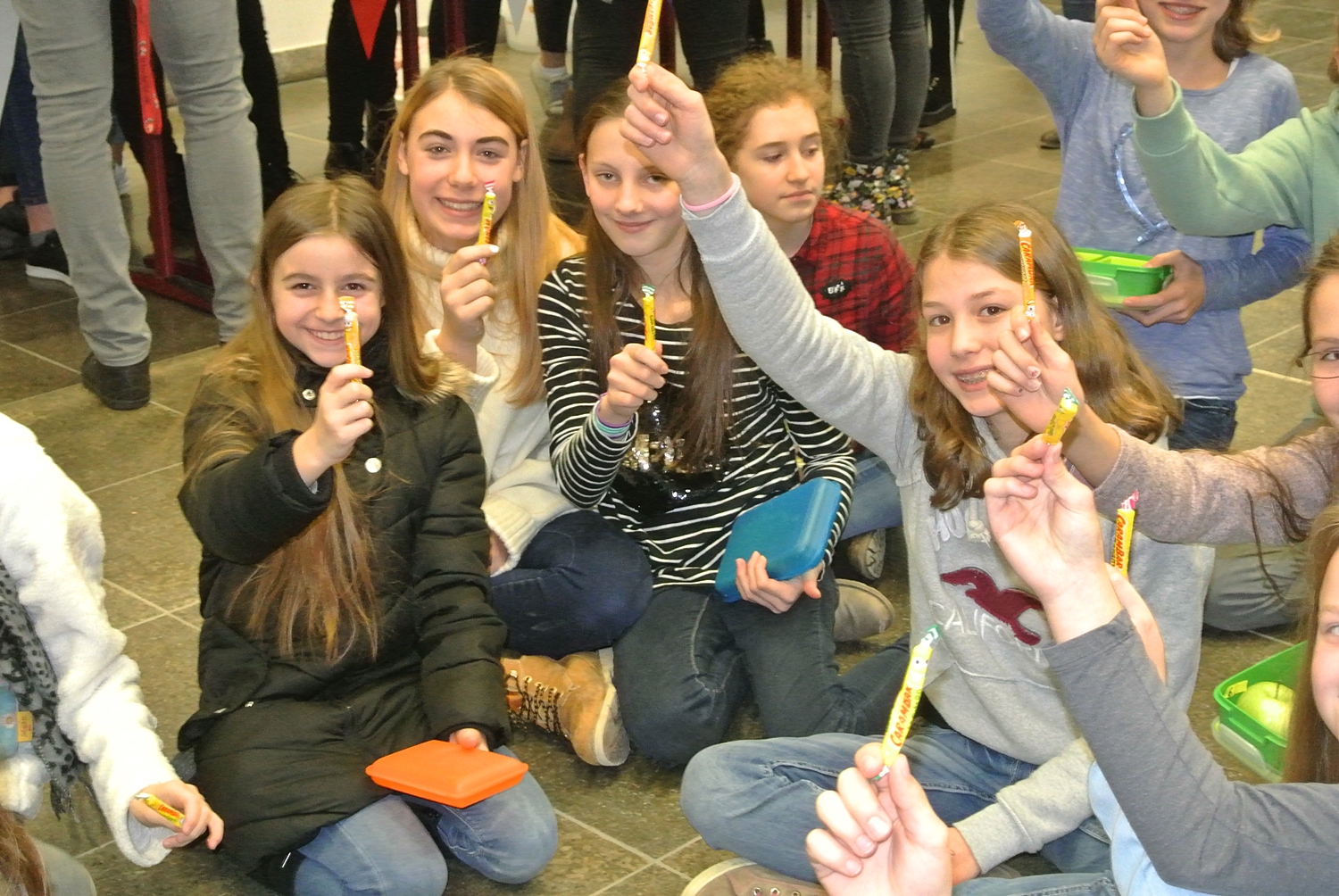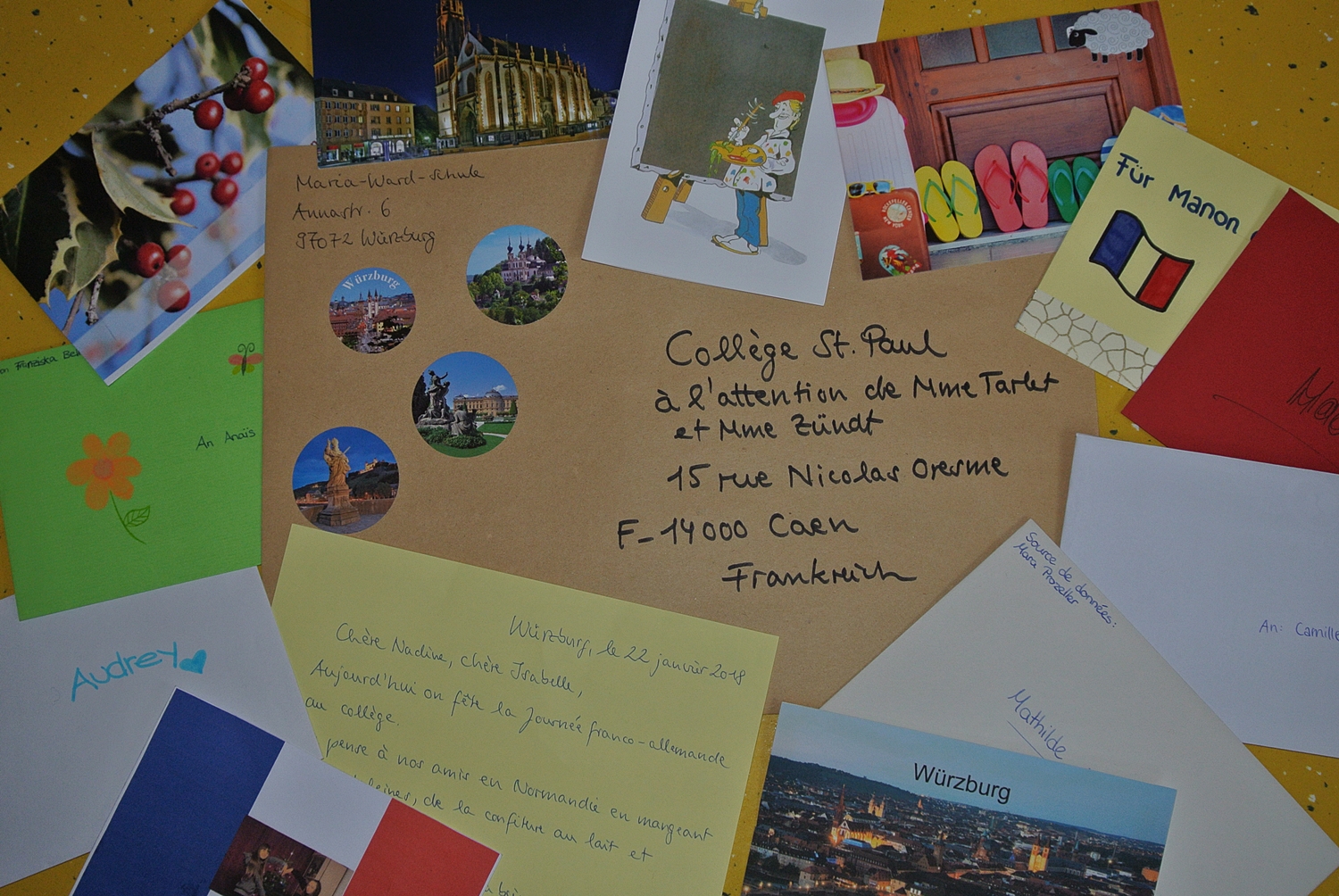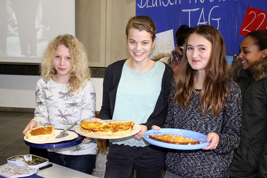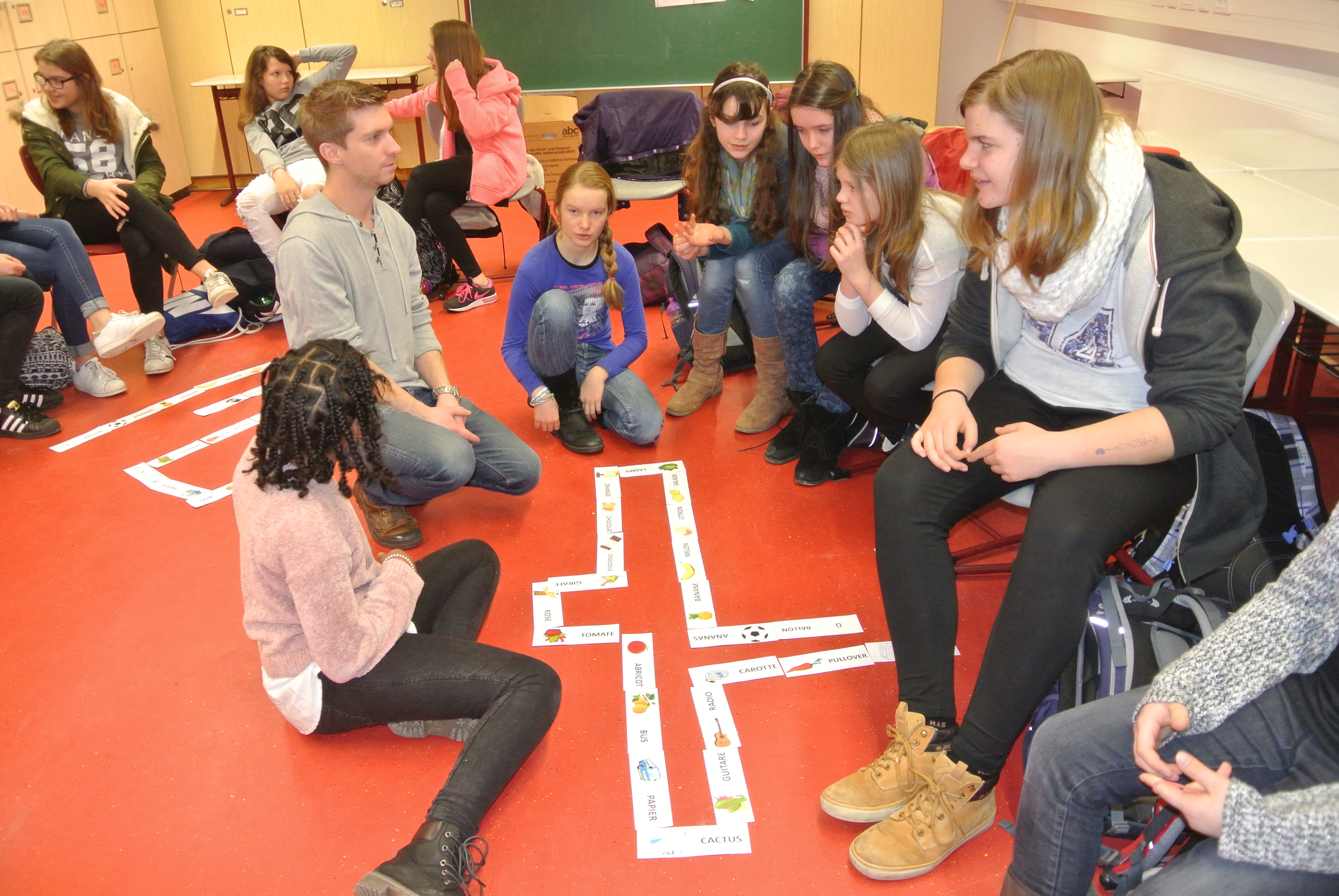 Getreu dem Motto unseres Schulbuchs Tous ensemble entdecken wir mit unseren Schülerinnen Frankreich nicht nur in der Theorie, sondern auch ganz praktisch. Neben dem Erwerb solider Sprachkenntnisse ist es uns ein besonderes Anliegen, unser Nachbarland auch ganz real zu entdecken. Bereits die 6. Klassen dürfen beim Projekt «Salut tout le monde», das vom Partnerschaftsbüro des Bezirks Unterfranken angeboten wird, einen «echten Franzosen» treffen.